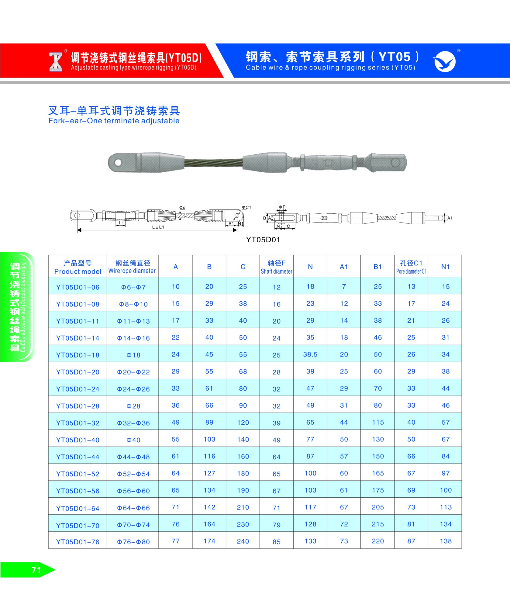 叉耳-單耳式調(diào)節(jié)澆鑄索具(YT05D01)